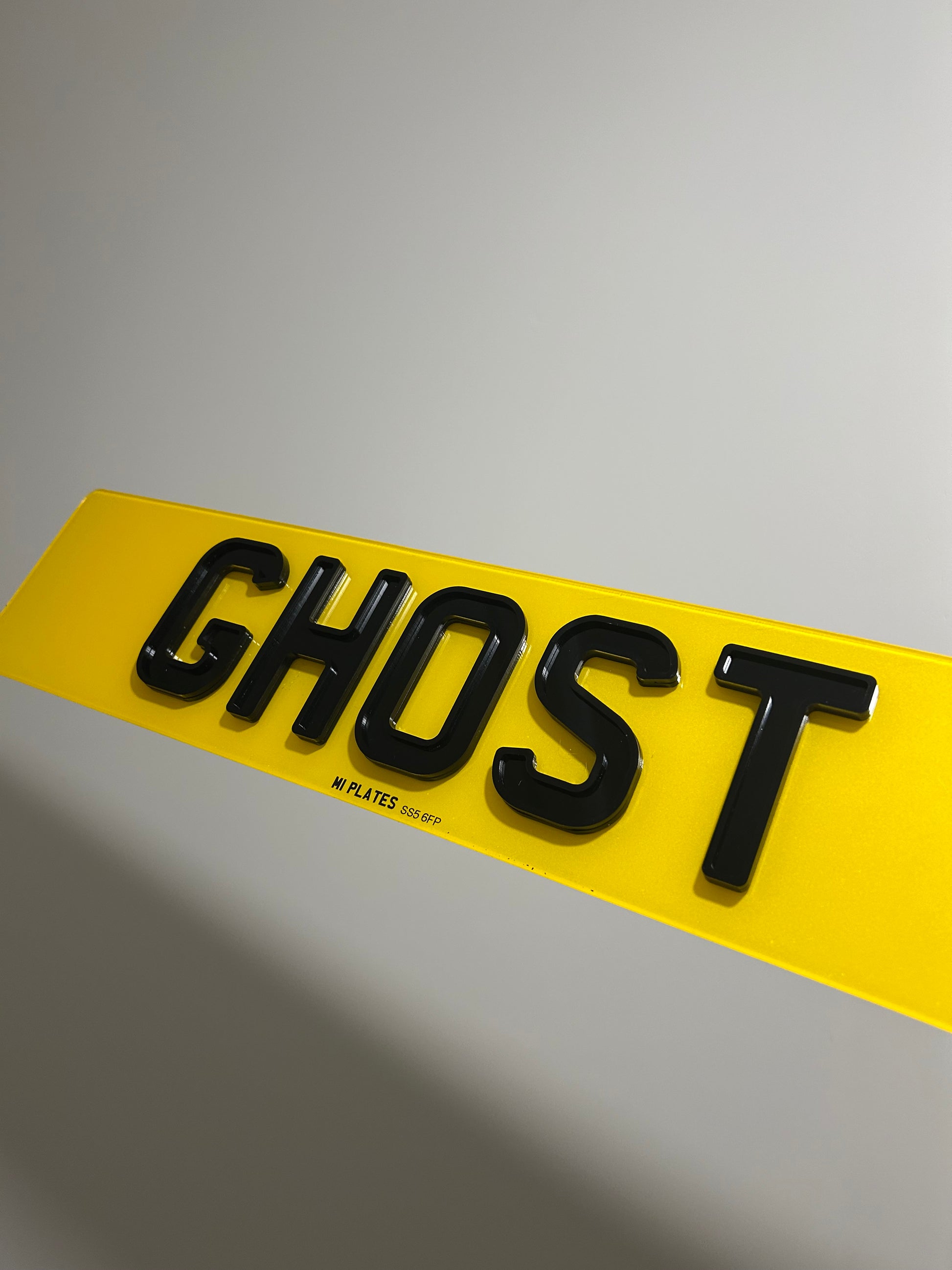 Elevate the look of your vehicle with our Ghost Style Premium UK Number Plates, designed to meet UK legal requirements while offering a subtle, sleek appearance. These plates feature 3M 4D 3mm letters with a 4D outline in a Ghost Style, creating a stylish yet understated effect that enhances your vehicle’s aesthetic.